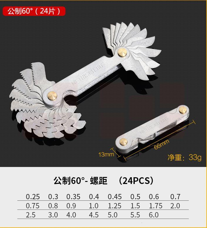 螺纹规公制60度英制螺牙规螺纹样板规测牙距的尺量纹量丝测量工具