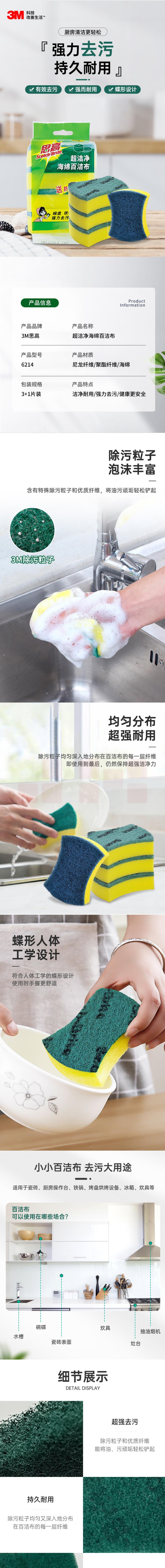 3M 思高6214海绵百洁布 去油污 超洁净3片