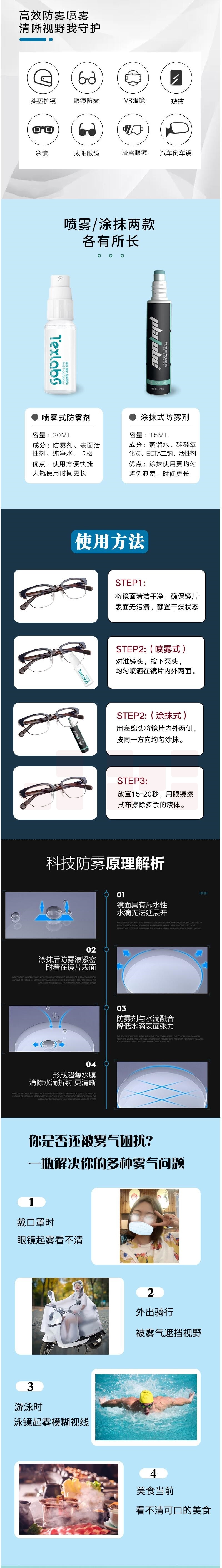 眼镜防雾剂 护目镜防护喷雾 20ml 24小时有效防雾