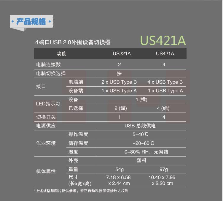 ATEN宏正 4口USB打印机共享器 4进1出电脑usb自动切换器
