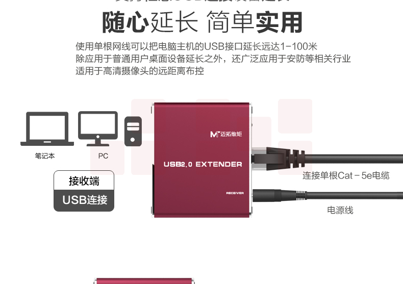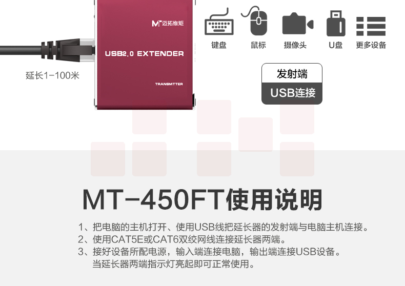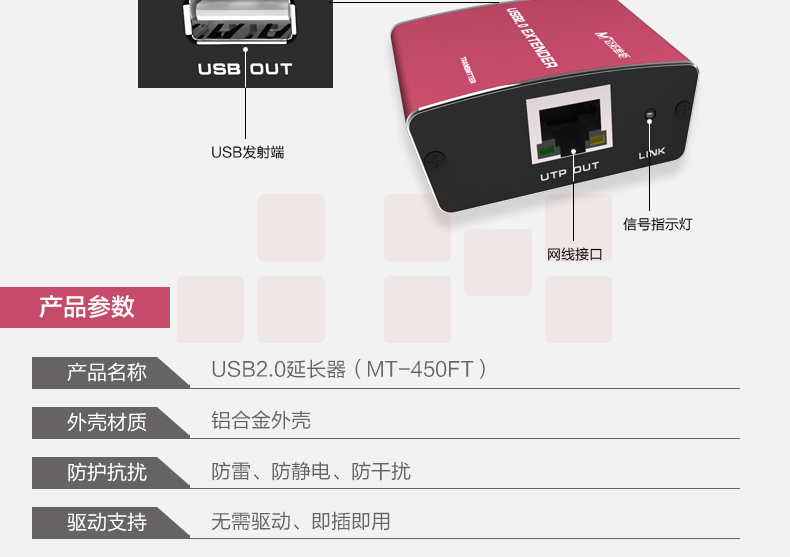迈拓维矩MT-450FT USB延长器 100米传长驱 信号收器放大器