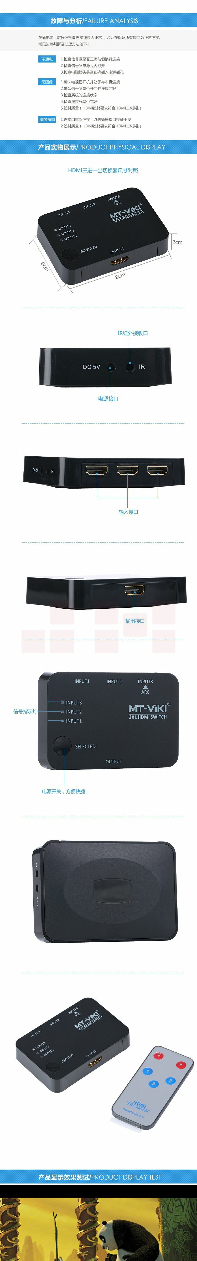 迈拓维矩 MT-SW301SR HDMI 带遥控1.4支持2K*4K 升级版高清切换器