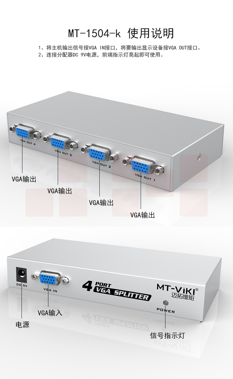 迈拓维矩MT-1504K vga分配器一分四分频器一进四出高清vga分屏器1分4