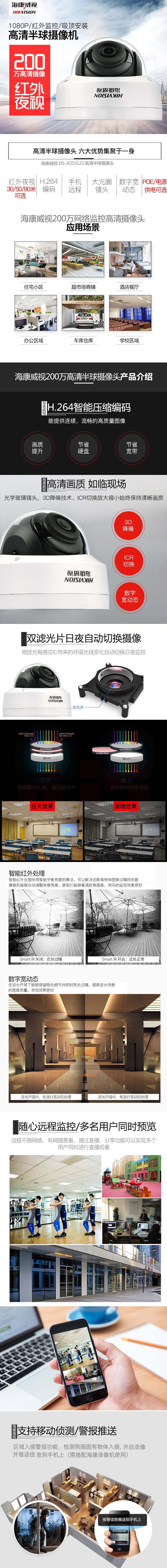 海康威视 DS-2CD3125FV2-IS 监控摄像头200万网络高清 POE供电 货号:WY