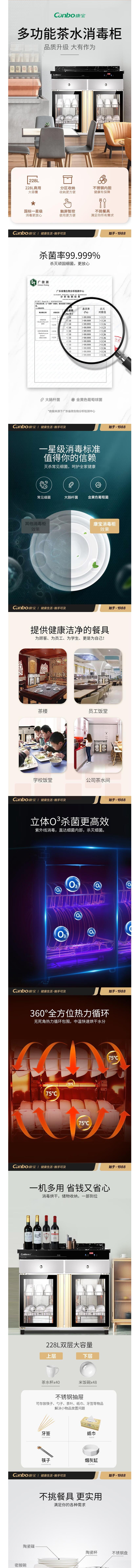 康宝(Canbo)商用茶杯消毒柜 立式碗柜 XDZ288-CS3