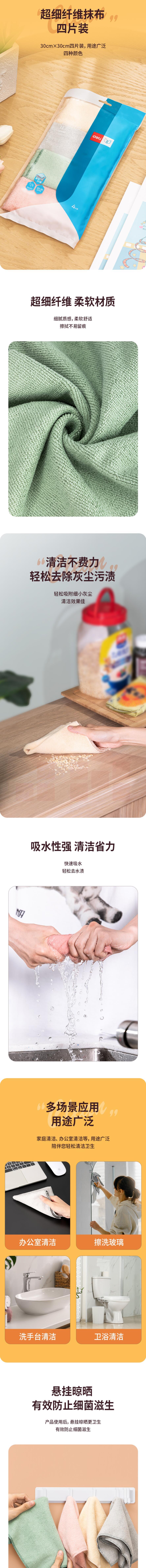得力LQ390 超细纤维抹布30*30cm 4片装 四色混装