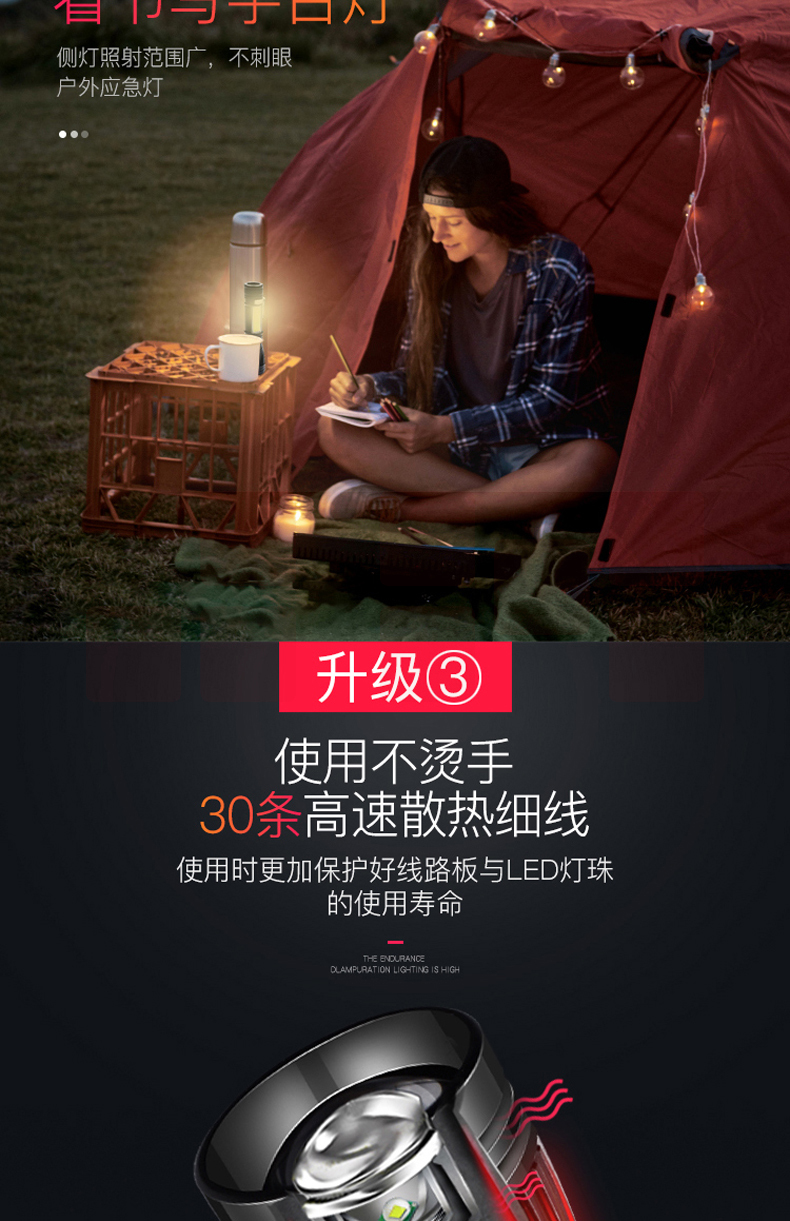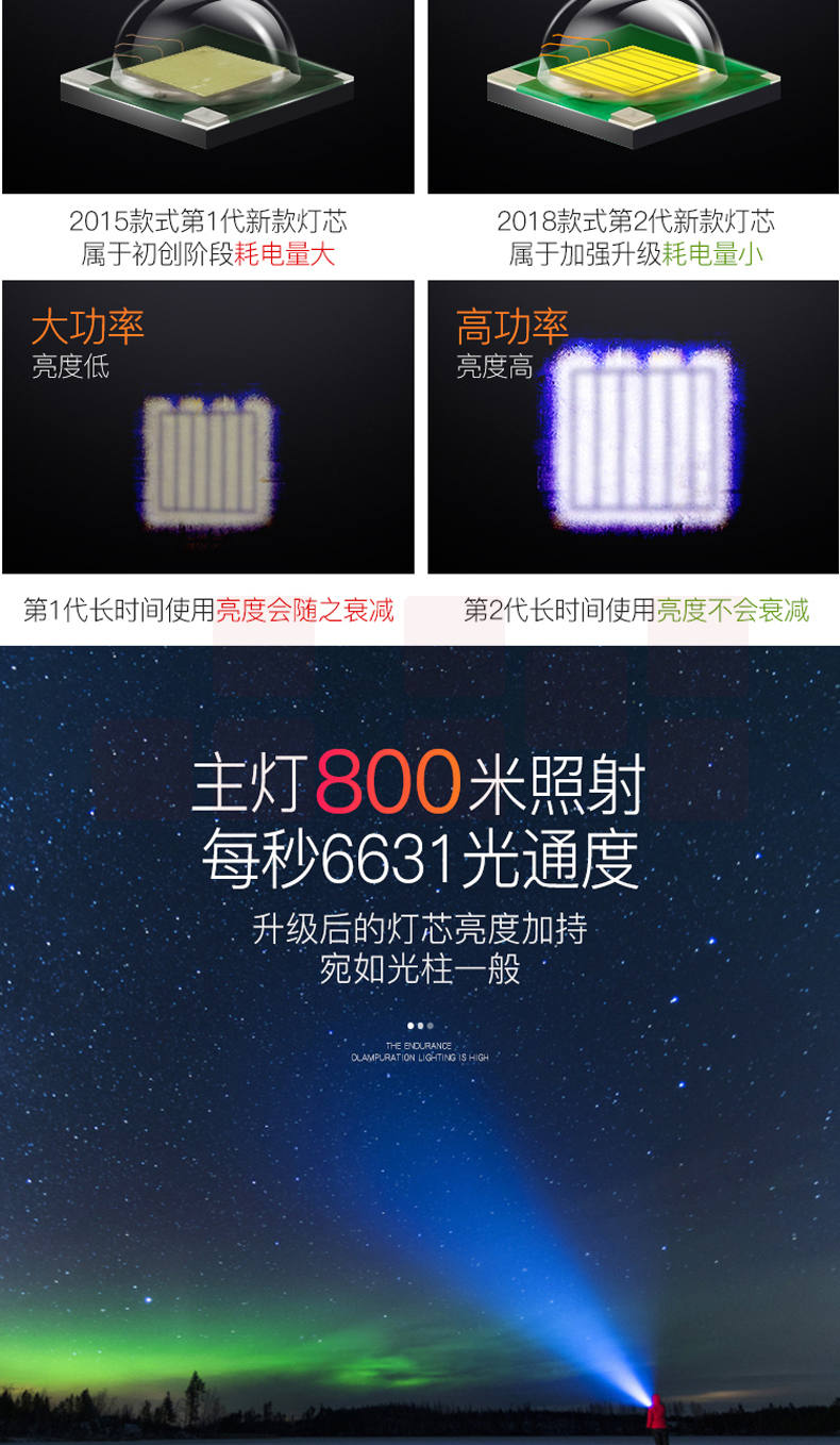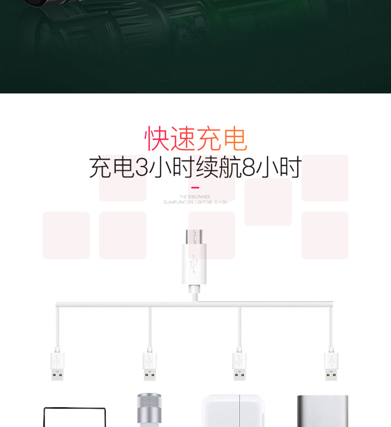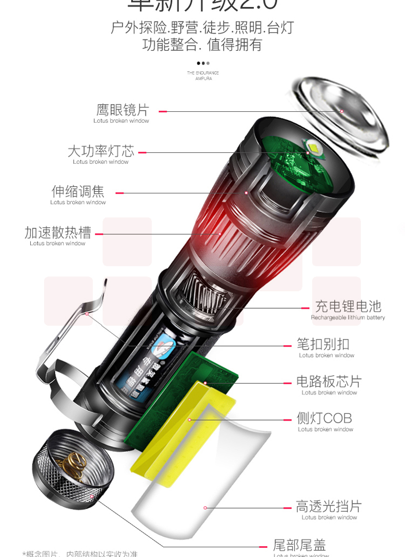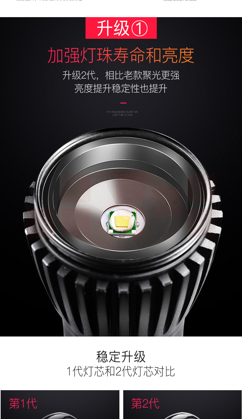 铝合金材质 强光-弱光-闪光 带侧灯 伸缩调焦 匹配18650电池