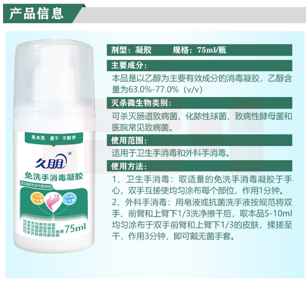 久朋 便携式75ml 免洗手消毒液 杀菌洗手液 75%