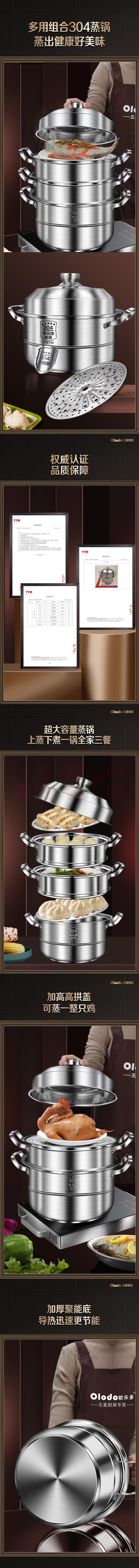欧乐多 304不锈钢蒸锅 多功能四层加厚馒头蒸笼 4层蒸锅