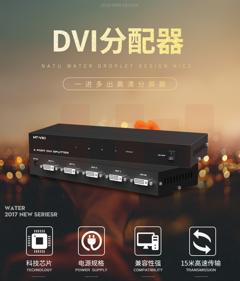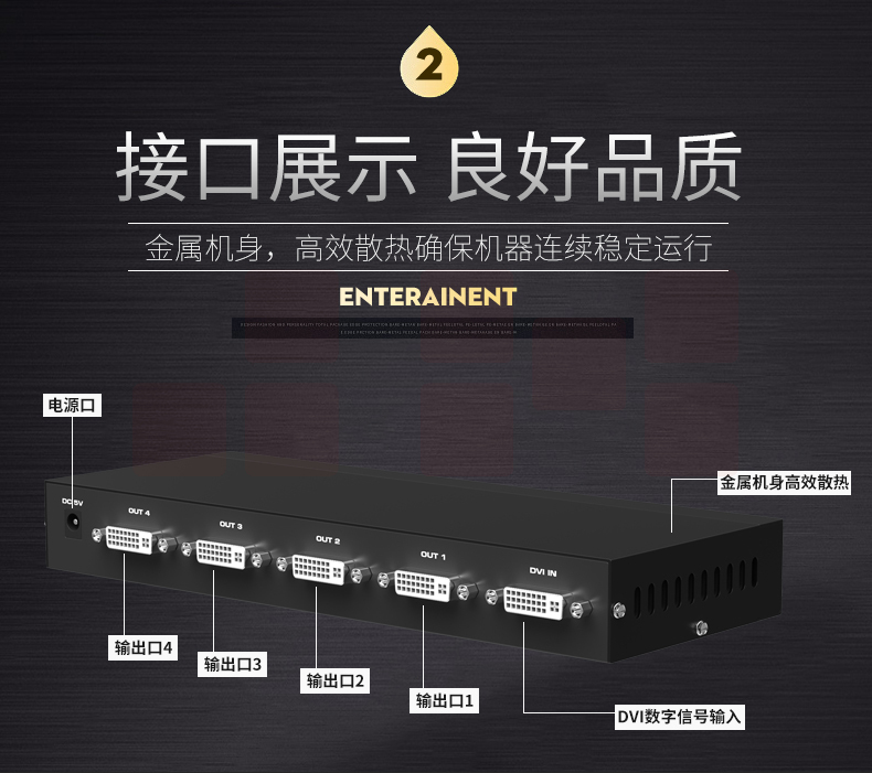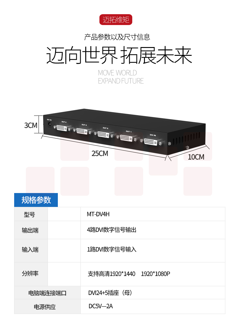 迈拓维矩MT-DV4H 高清dvi分配器1进4出一分四电脑显示器分屏器1080p