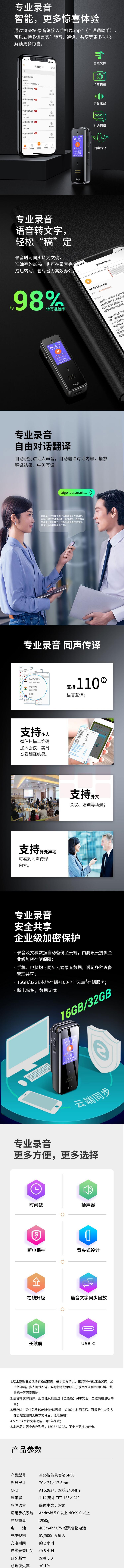 爱国者aigo 32G AI智能录音笔SR50 会议录音转文字