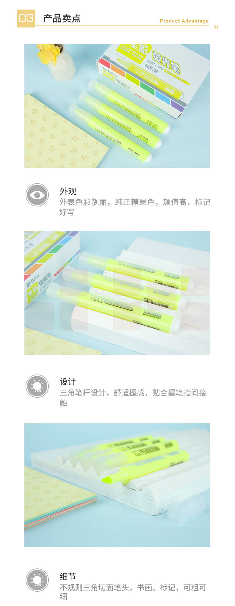 晨光 荧光笔彩色笔 黄色 12支-AHMV7603