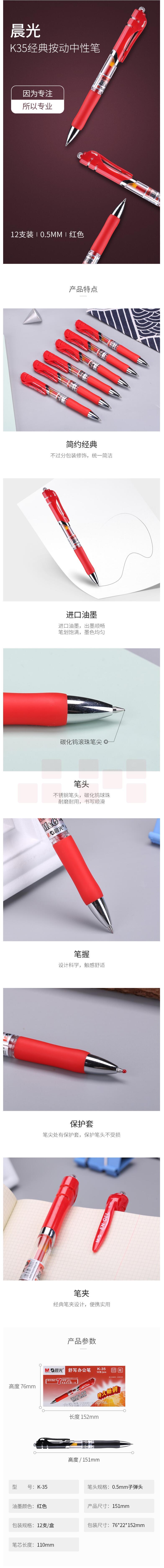 晨光 红色中性笔 K35/0.5mm 经典按动子弹头签字笔