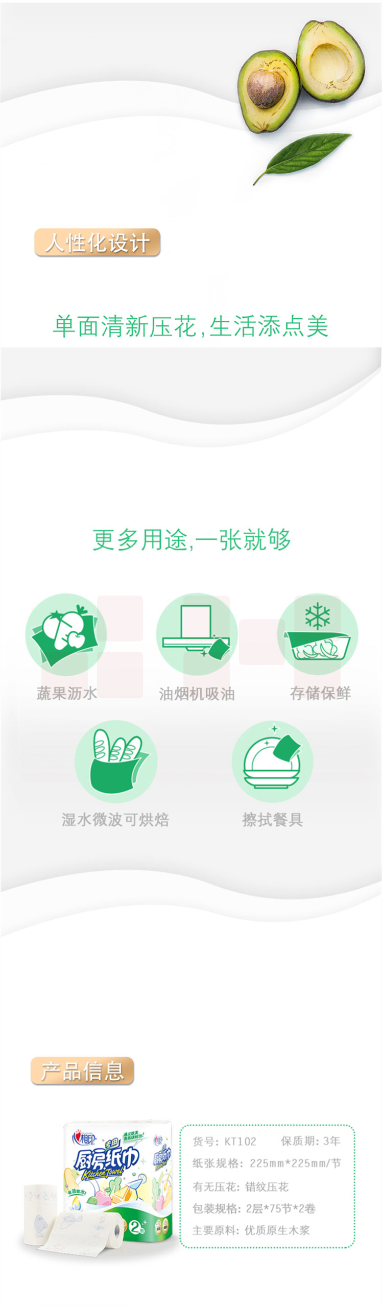 心相印 吸油纸厨房纸 厨房用纸 75节*2卷 厨房纸巾