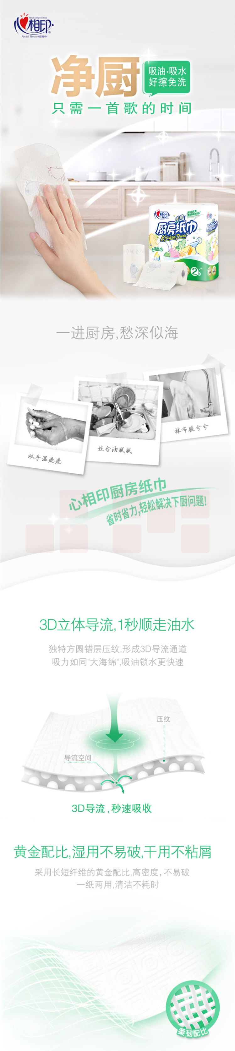 心相印 吸油纸厨房 厨房用纸卷纸吸水纸 加厚擦手纸 厨房纸巾 2卷/提