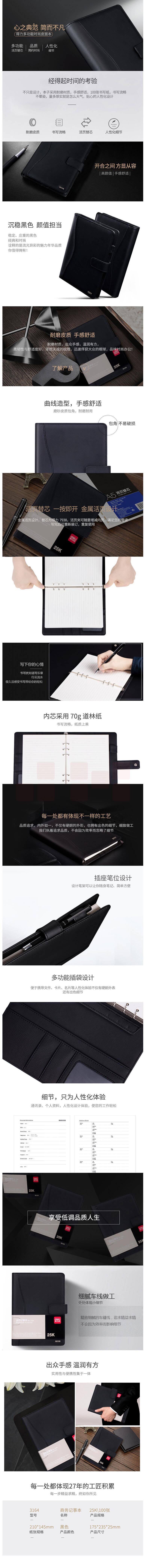 得力(deli)25K100张高档活页笔记本 商务办公记事本日记本 黑色3164