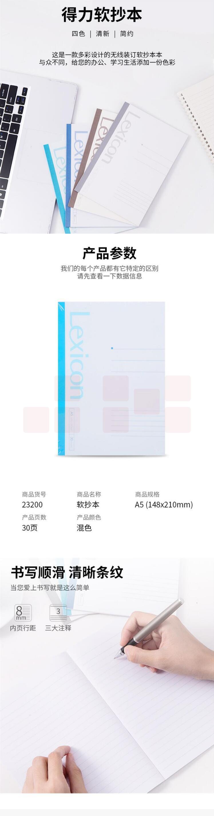 得力 A5/30张无线装软抄本记事本23200(12本/包)