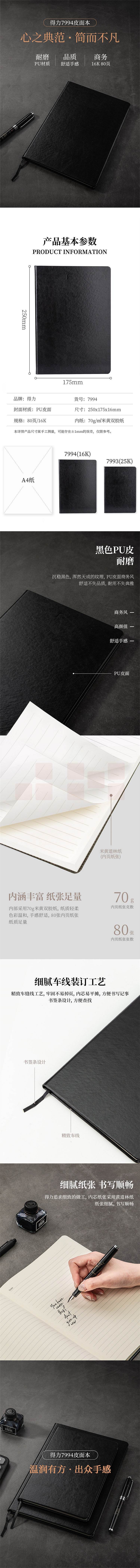 得力(deli) 16K80张商务经典单包贴芯PU材质皮面本 会议记事本笔记本7994 黑