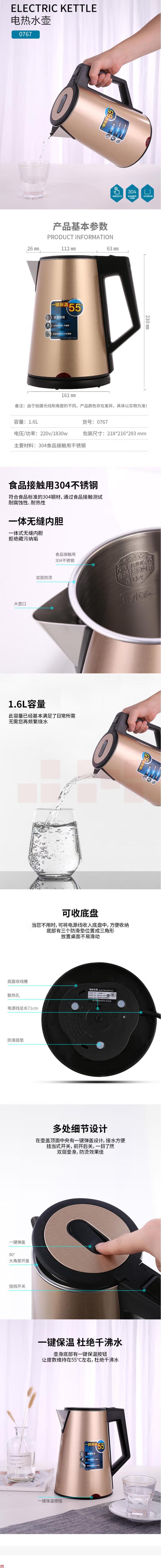 得力 (deli)1.6L电水壶不锈钢防烫伤电热水壶双层防滑烧水 避免千滚水0767香槟金