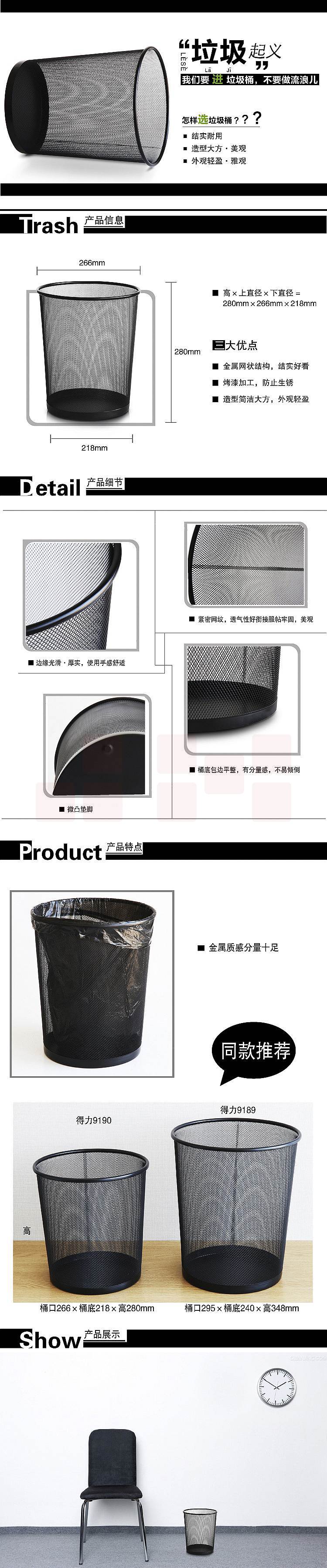 得力 9190 圆形纸篓266x218x280mm金属丝网喷塑工艺