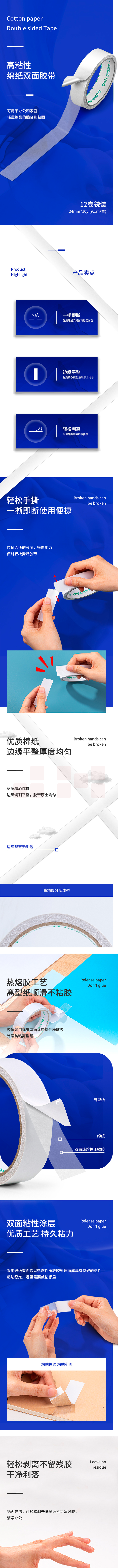 得力(deli))高粘棉纸双面胶带 24mm*10y(9.1m/卷) 12卷装 30403