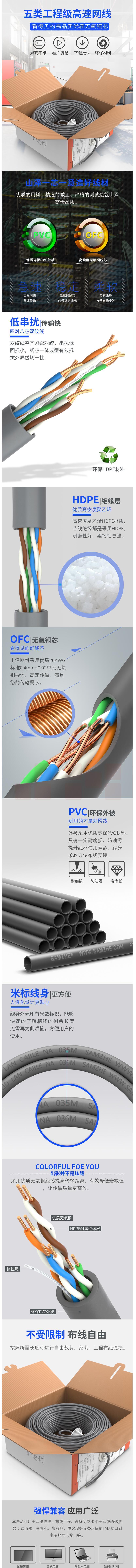 山泽(SAMZHE) SZ-4305 工程级五类网线 无氧铜高速CAT5类非屏蔽家装网络布线箱线 305米