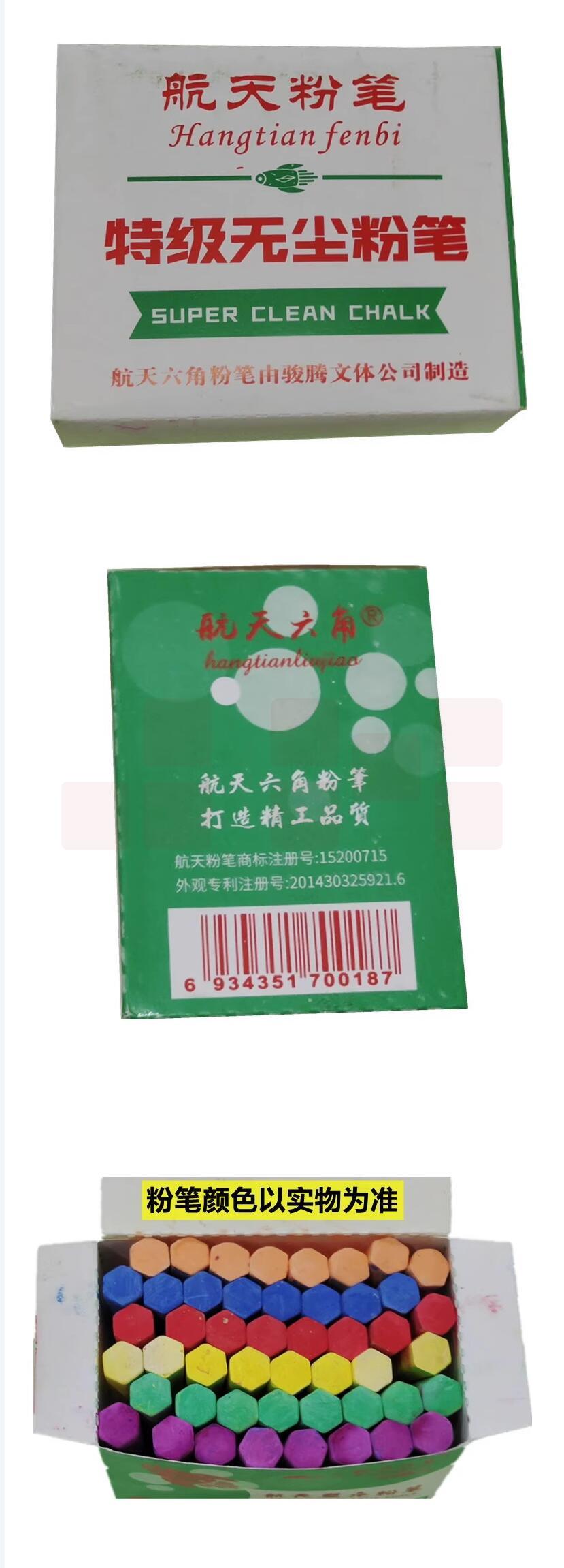 航天牌 六角彩色粉笔 无尘彩色粉笔 彩色黑板粉笔 48支/盒 50盒/箱 单位:盒