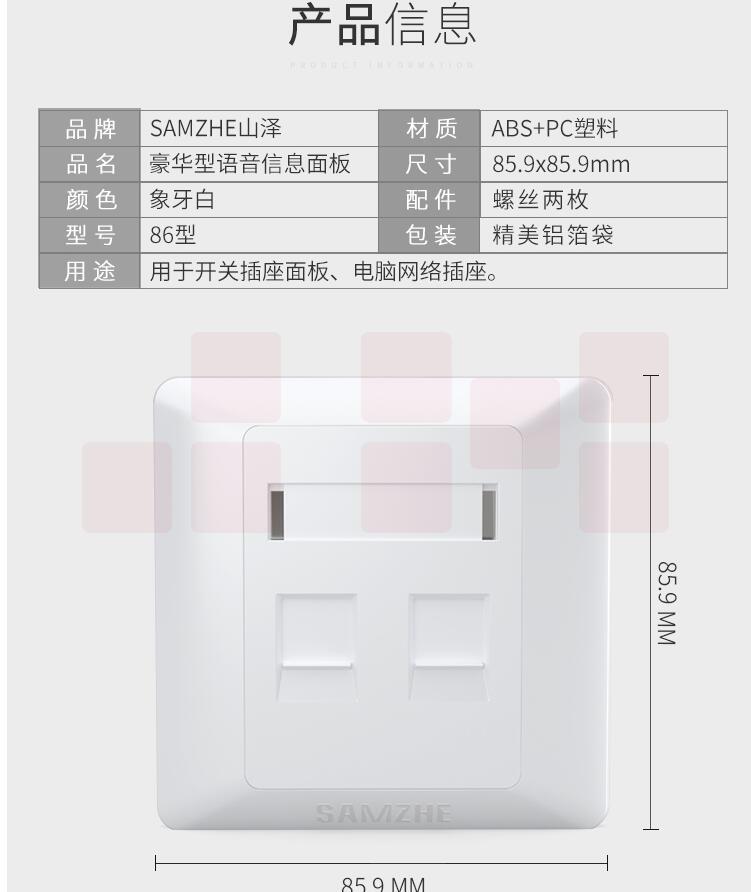 山泽(SAMZHE)WAN-14 电脑插座网口网络面板 加厚86型面板 四口