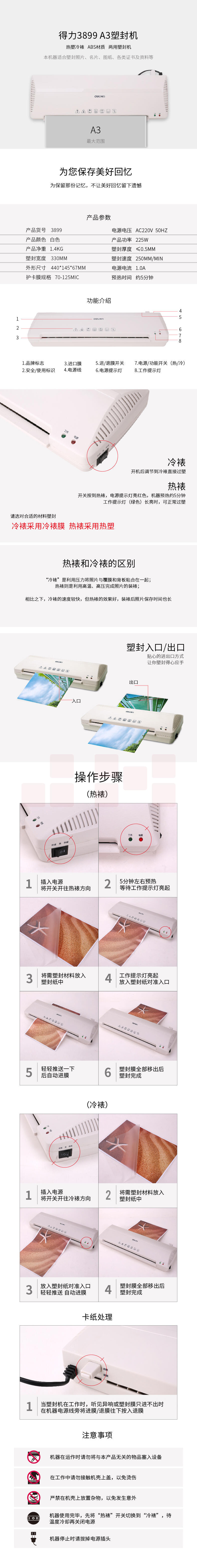 得力 A3塑封机 照片过塑机文件覆膜护卡膜封塑膜3899
