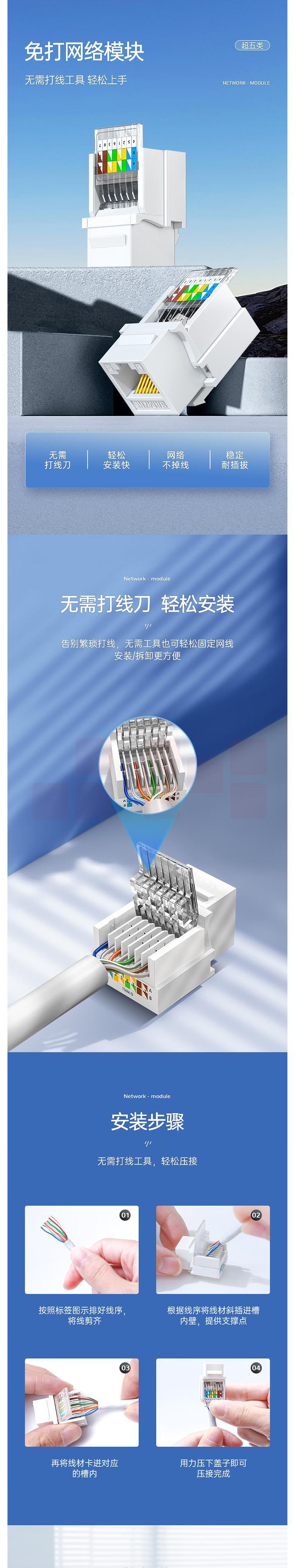 山泽 超五类网络模块 CAT5e免打网线面板模块 MKC51 货号:GD