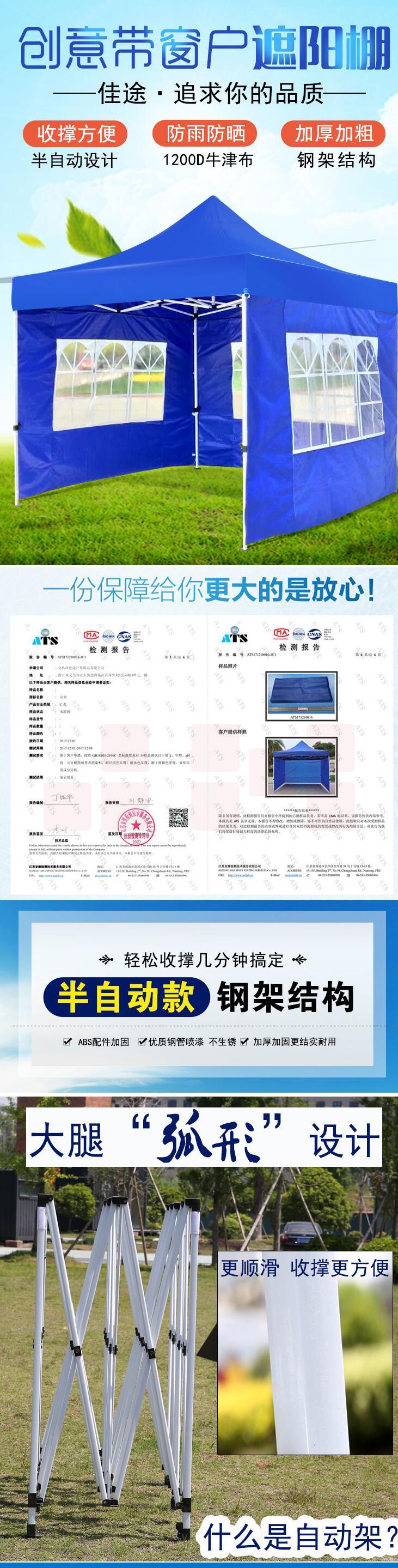 户外遮雨棚 防疫帐篷 伸缩式遮阳蓬 3*3米 4面透明 (红蓝备注) 货号:HXE