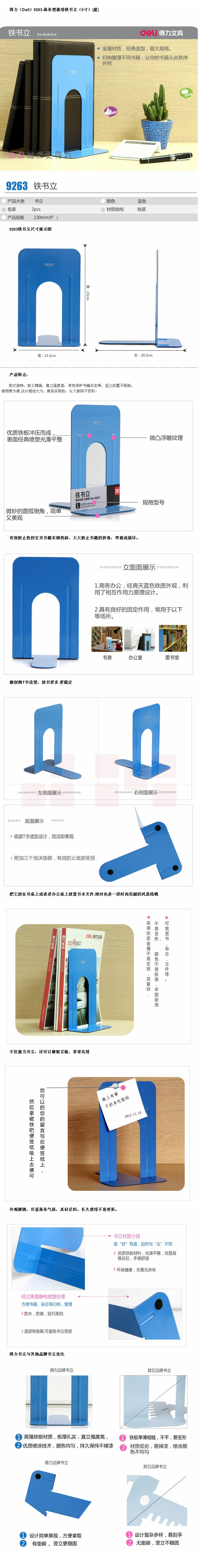 得力 9英寸(高23cm)金属铁书立架 书籍挡靠夹2片/付 蓝色9263
