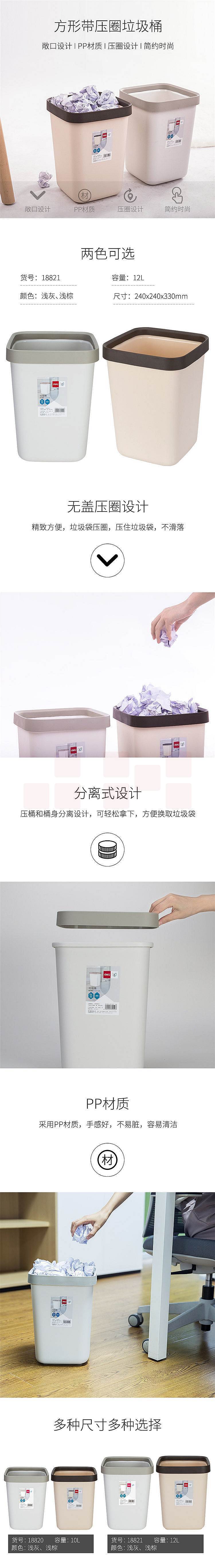 得力18821垃圾桶(浅灰)12L方形敞口(单位:只)
