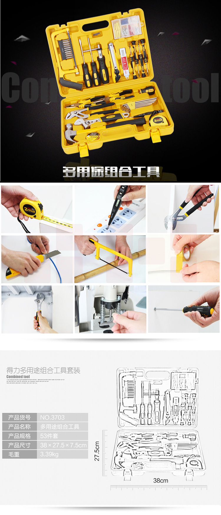 得力(deli)3703 多功能组合工具箱 家用//五金工具套装 44件套