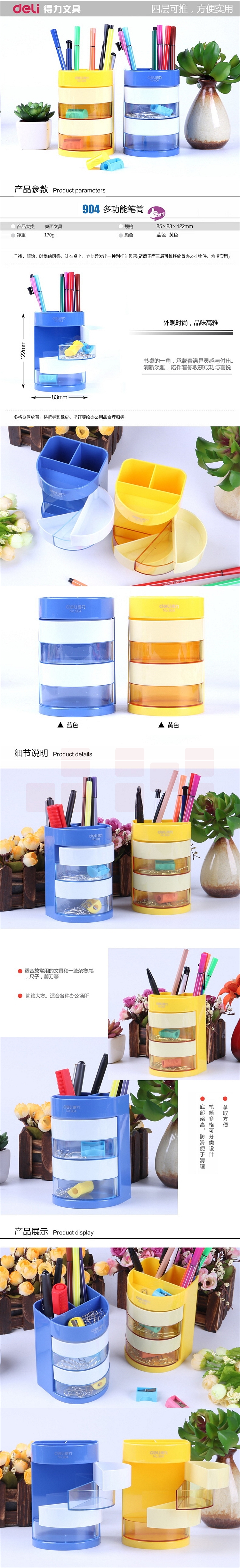 得力(deli)四层多功能办公笔筒 创意桌面收纳盒 蓝色904