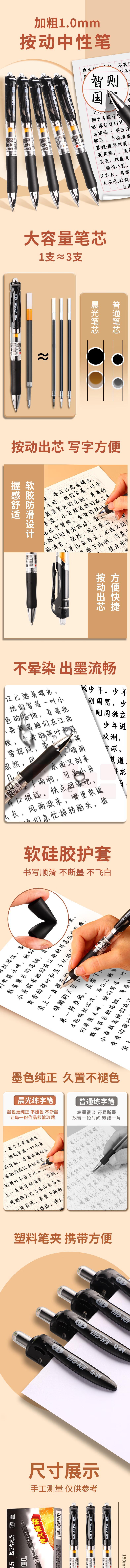 晨光(M&G)K35按动中性笔1.0mm商务签字笔黑色子弹头水笔 12支AGPK3566
