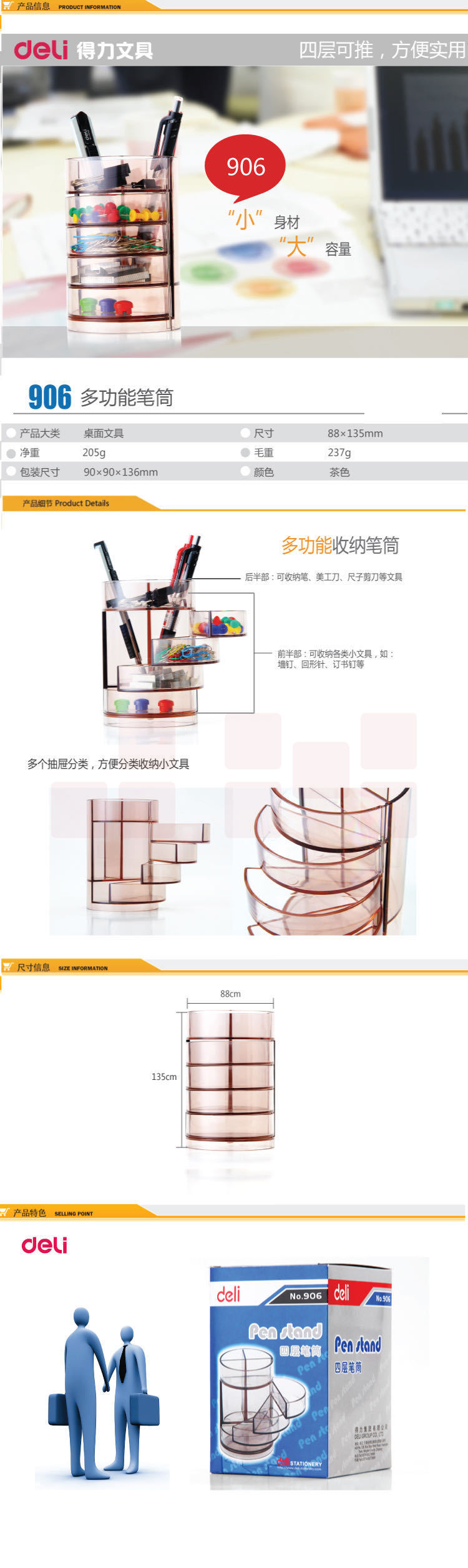 得力(deli)四层多功能办公笔筒 创意桌面收纳盒 透明906