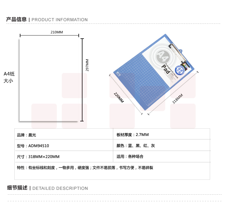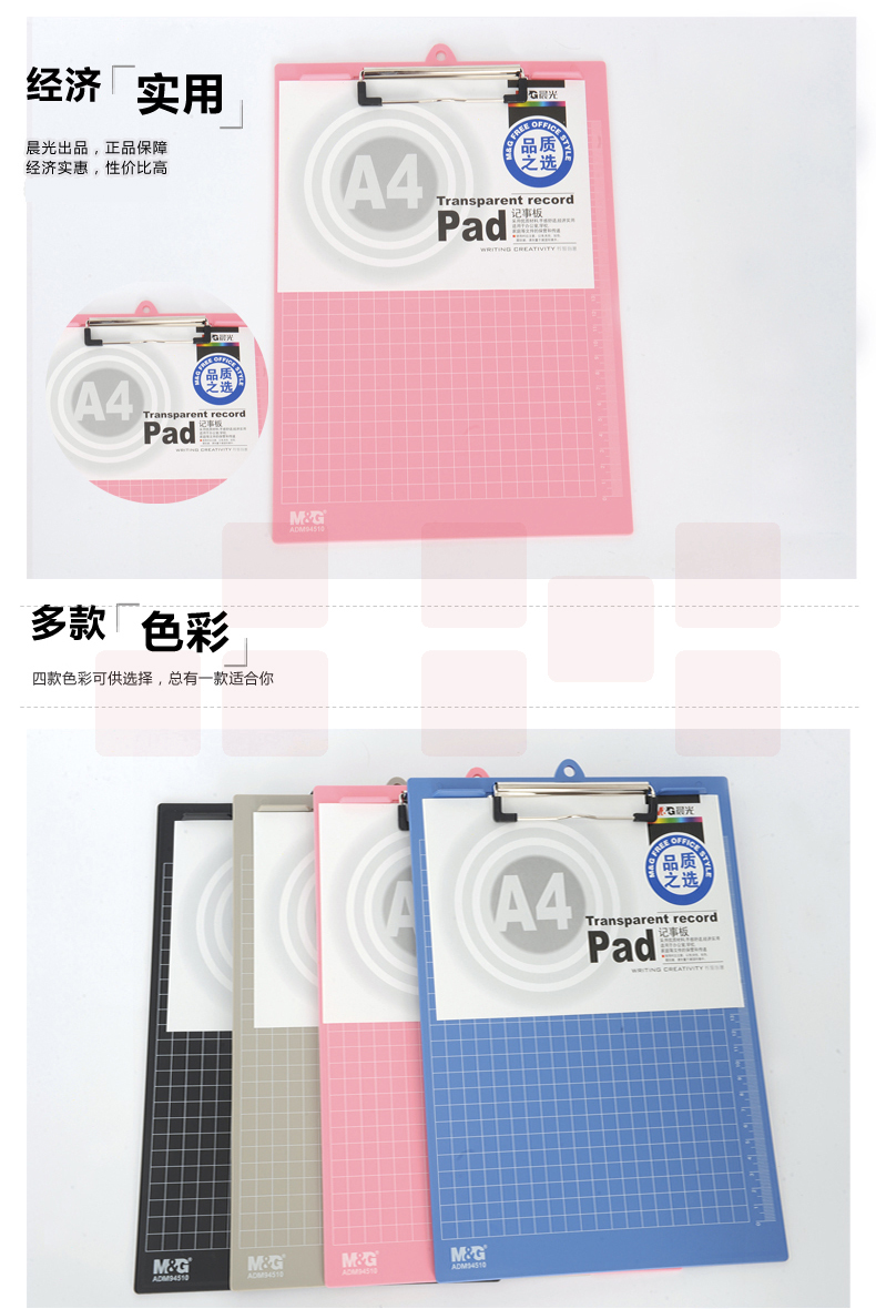 晨光A4记事板竖式塑料ADM94510透明