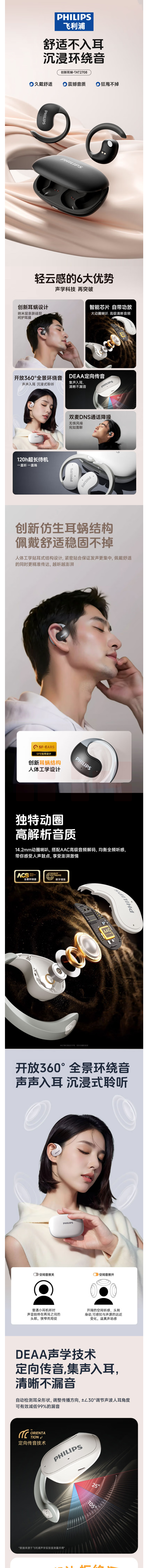 飞利浦 蓝牙耳机骨传导无线耳机 TAT2708