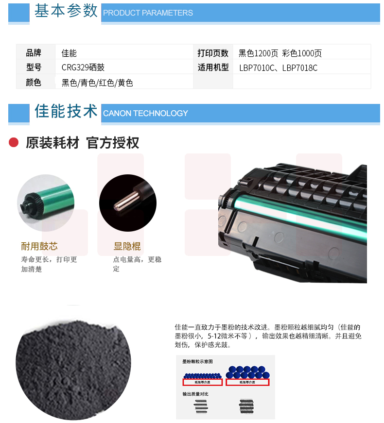 佳能 CRG-329 Y 黄色粉盒 (适用于LBP7010C/LBP7018C)