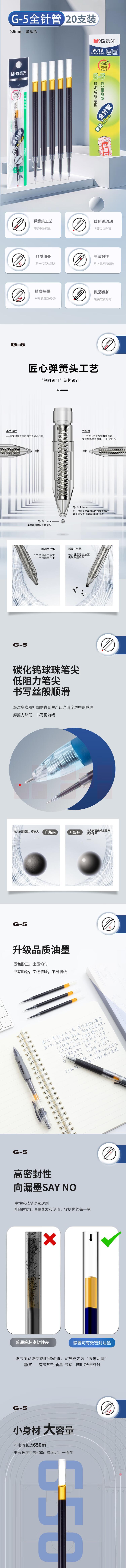 晨光(M&G)墨蓝色0.5mm按动全针管中性笔芯替芯水笔芯K35/S01/S08适用9018A 20支