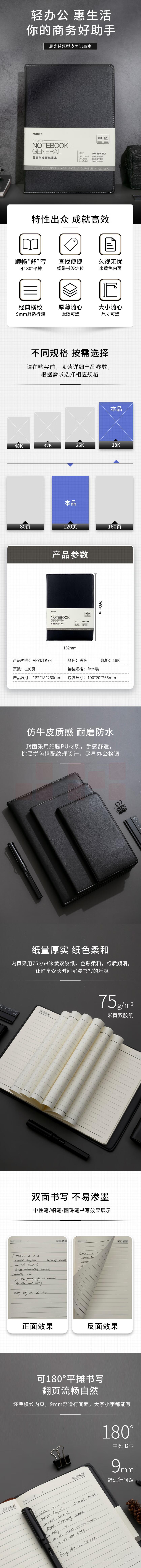 晨光(M&G)B5/18K 120张黑色笔记本 会议记录皮面本黑色 编号12