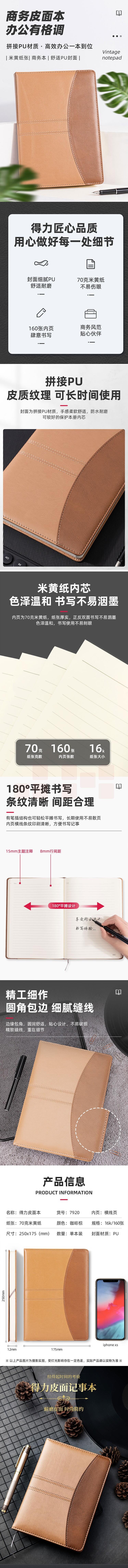 得力(deli)16K160张时尚撞色商务皮面本 会议记事本笔记本棕色 7920