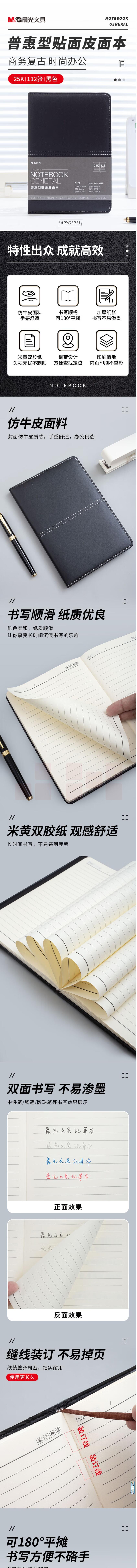 晨光A5/25K 112张黑色办公笔记本 会议记录皮面本 APYG1P11