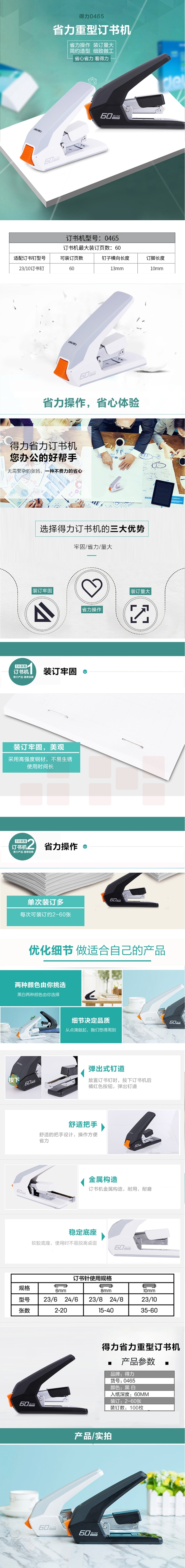 得力0465省力订书机(黑)最大订60页 适配23/6~23/10订书钉