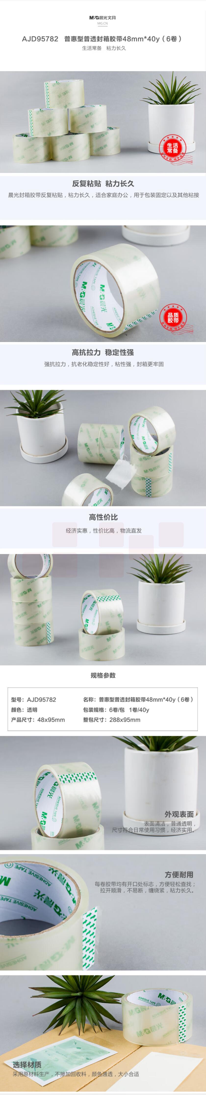 晨光(M&G)48mm*40y透明封箱胶带透明胶带AJD95782 6卷装