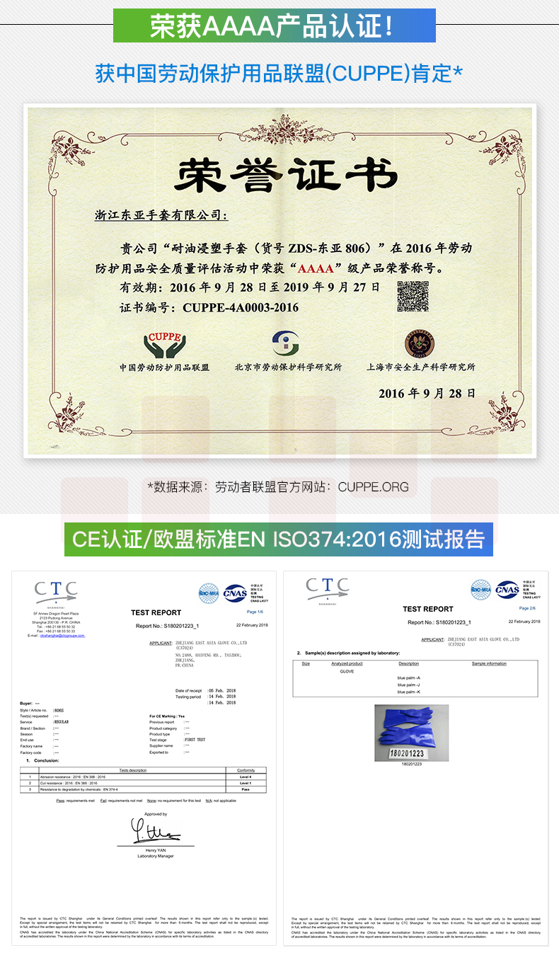 东亚(EAST)806 耐油手套耐酸碱手套工业浸塑橡胶手套劳保手套大码防水