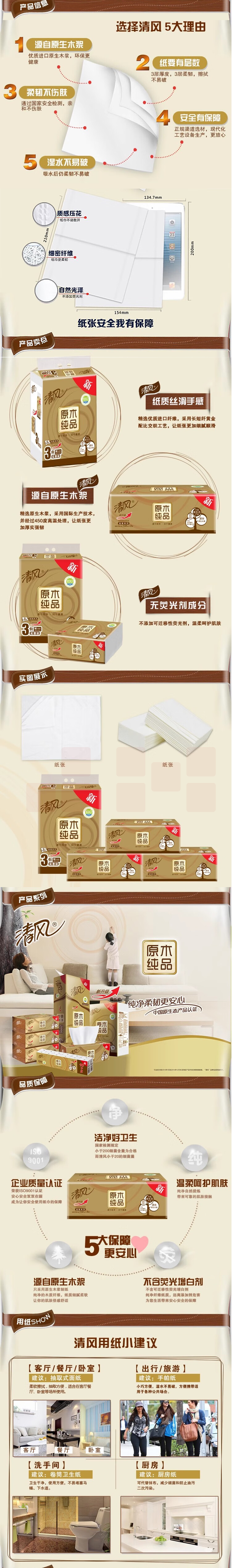 清风 金装原木纯品抽纸 面巾纸 190*154mm 4层120抽 3包/提 16提/箱 整箱48包BR34MJ