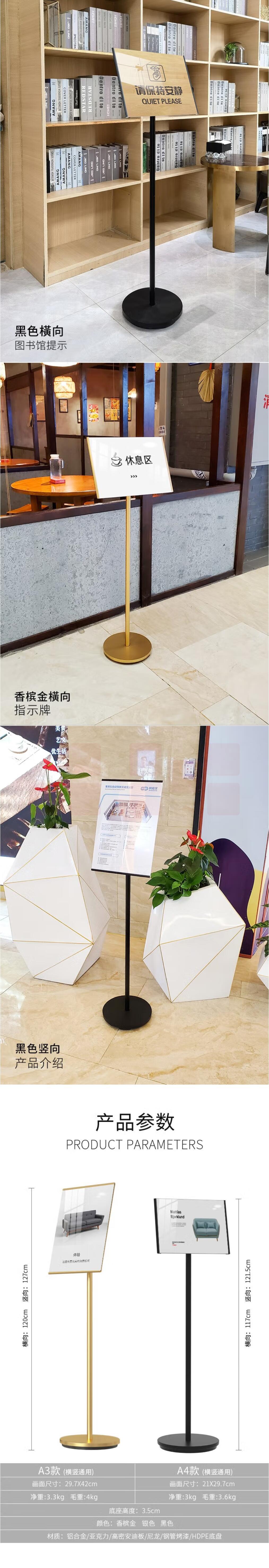 水牌引路牌展示导向牌a3落地指示牌【A3黑色】横竖通用