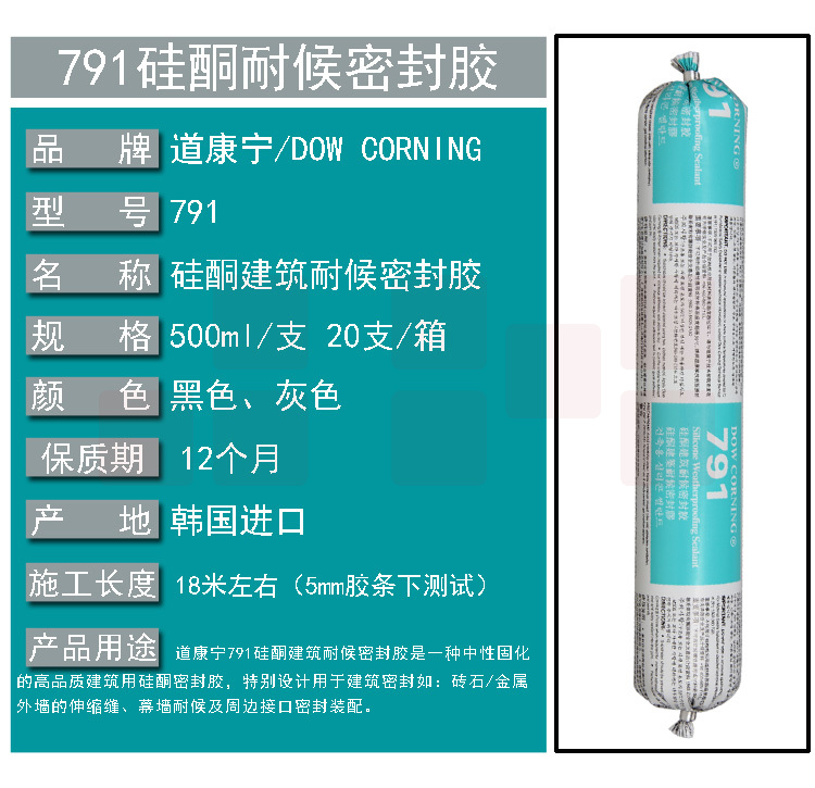 道康宁791韩国进口玻璃胶防水耐候密封胶门窗幕墙结构胶正品黑色